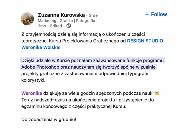 Początki w branży kreatywnej mogą być trudne. Często myślimy, że ta dziedzina jest zarezerwowana tylko dla tych nielicznych, którzy mają talent i znają tajniki programów. To nieprawda! Od ponad 5 lat prowadzę szkolenia, a moi Absolwenci z sukcesami działają w tej branży. Pokażę Ci, że nauka projektowania jest nie tylko łatwa, ale także niesamowicie satysfakcjonująca.